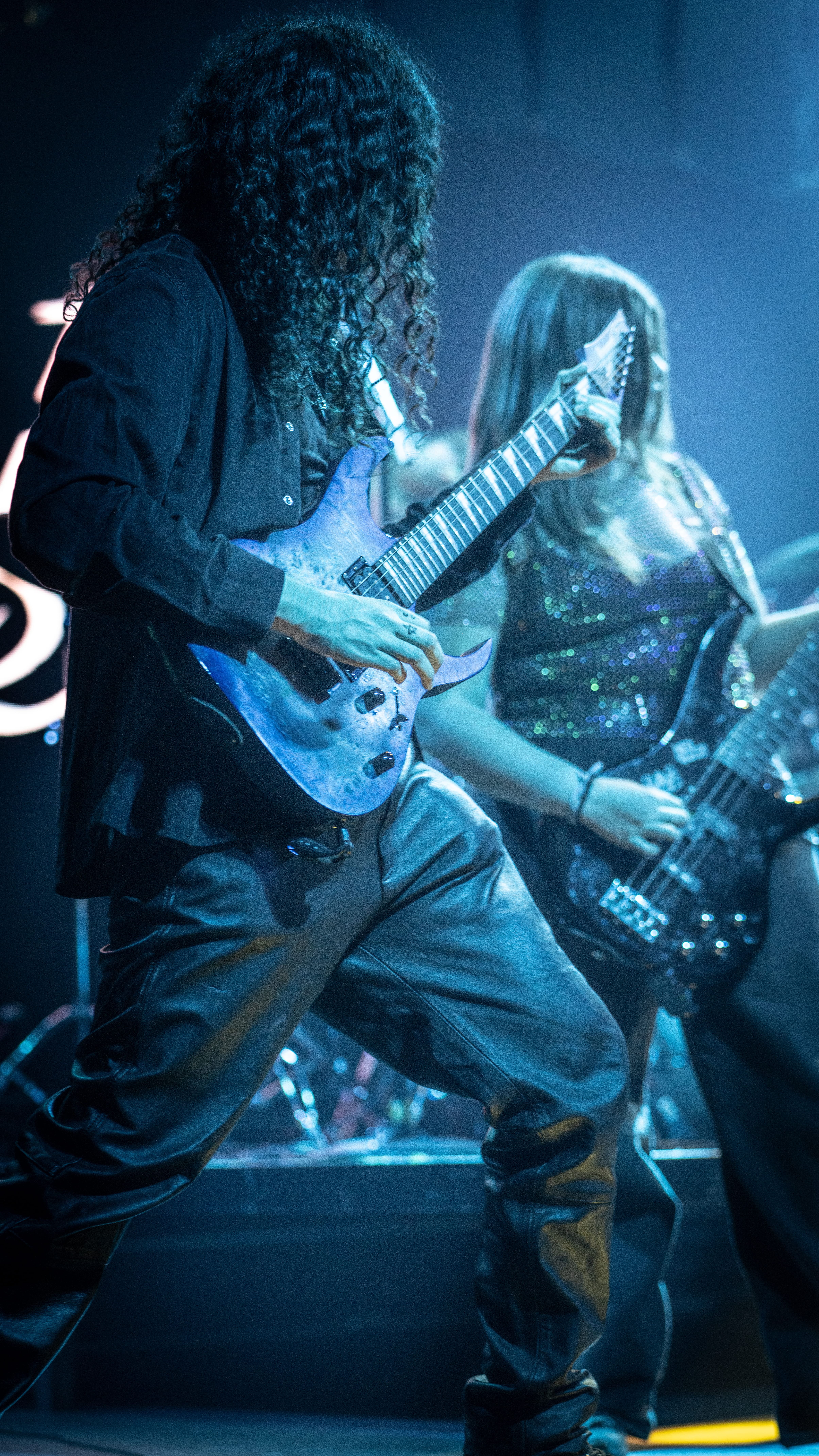 MoeRix es el encargado de prender fuego al escenario con los riffs y solos más potentes de The Black Outs. Con 5 años de práctica, se ha convertido en una pieza clave del sonido de la banda, mezclando energía, precisión y presencia en cada presentación.